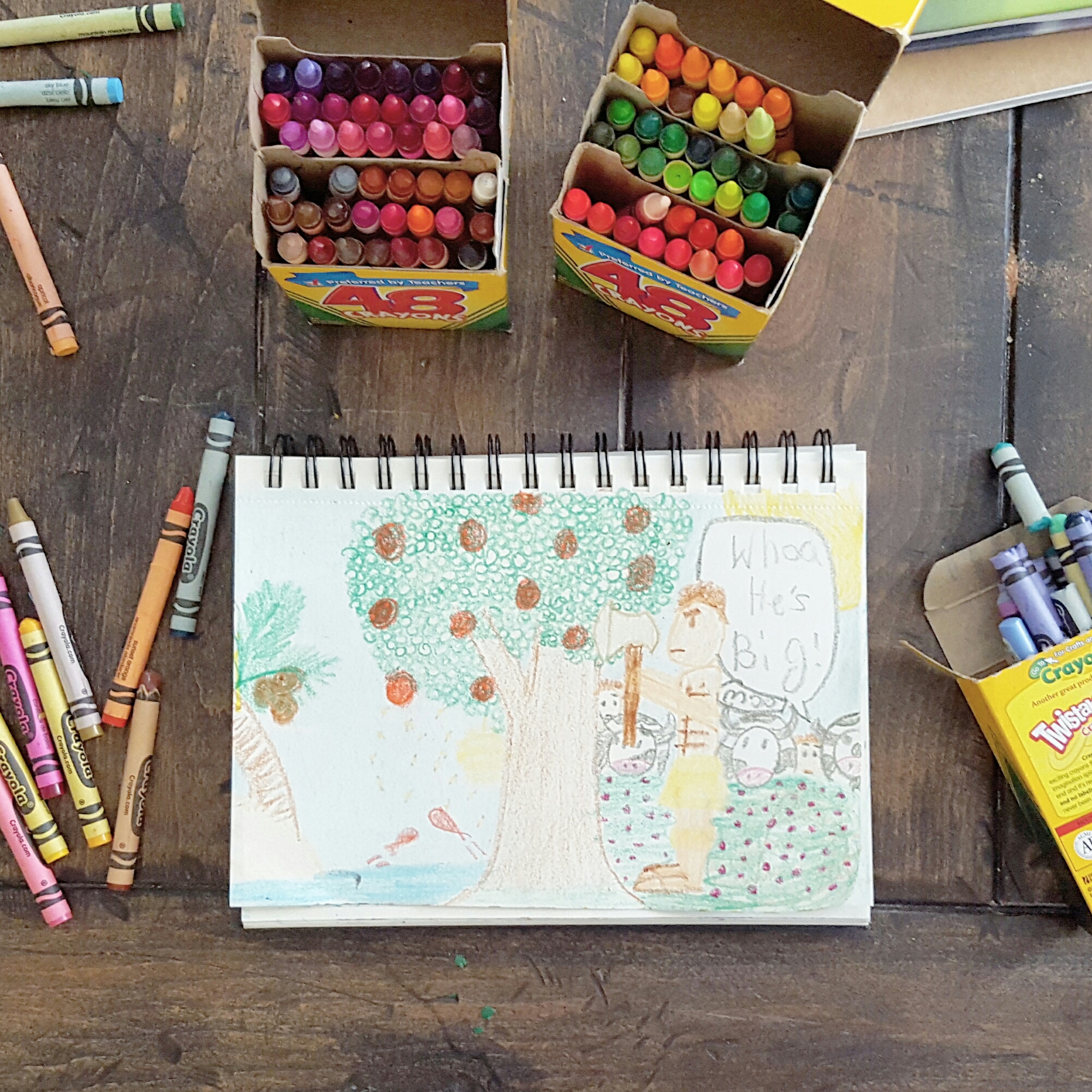 While listening to the Bible, art journals are being drawn in. This keeps hands busy and minimizes wiggles and distractions. It will also provide a wonderful, tangible memory of our most precious school time.