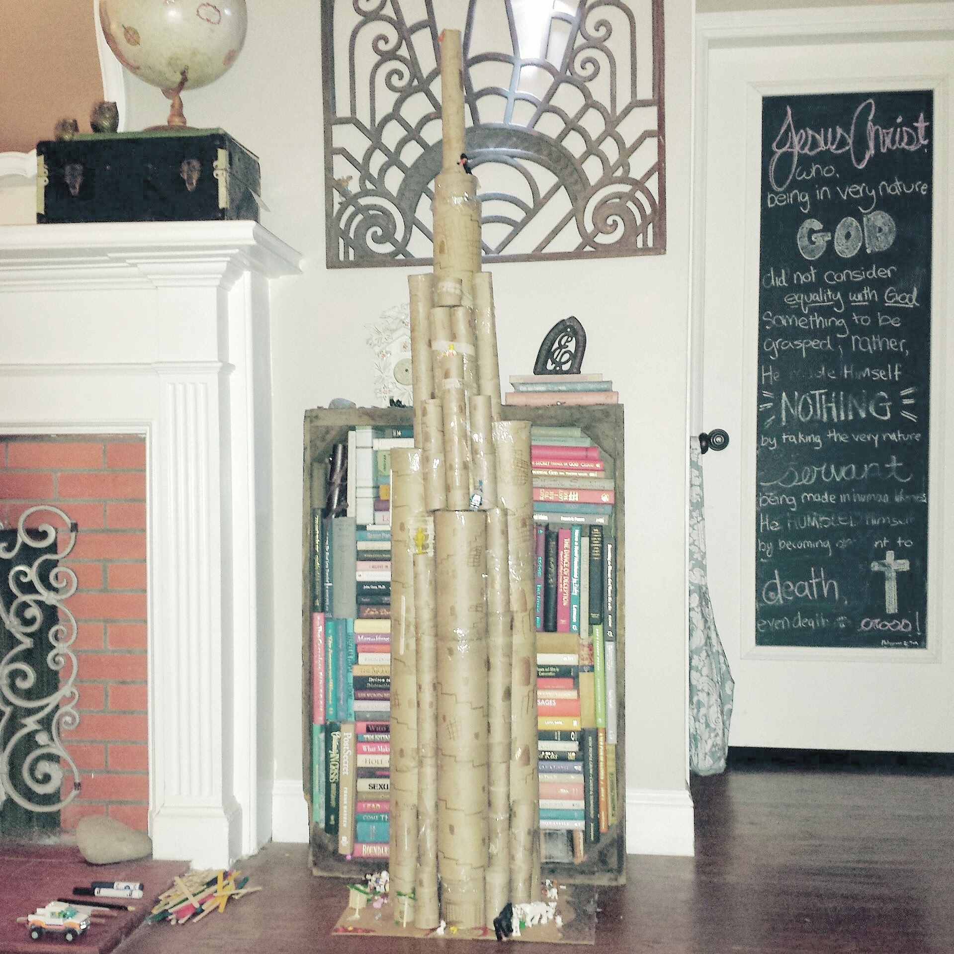We’ve built our own Tower of Babel out of toilet paper tubes (see photo below), Stonehenge of wafer cookies, a ziggurat of Legos… While we create, our